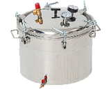Универсальны и одинаково качественно работают на газовой и электрической плите. Стоят дешевле и экономичнее в эксплуатации, так как позволяют экономить на коммунальных платежах по электричеству. Изготовлены из нержавеющей стали, устойчивой к температурному воздействию, марки AISI 304. Аппарат на 22 л вмещает 14 поллитровых или 4 литровых стеклянных банки, 46 л — 24 и 9 соответственно. Предварительная стерилизация тары не требуется. Для защиты от аварийного повышения давления и температуры на крышке установлен противоаварийный предохранительный клапан. Необходимо контролировать встроенные термометр и манометр лично.